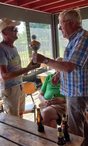 Tijdens een gezellig onderonsje in de kantine van de visclub werd de wisseltrofee onder applaus uitgereikt aan Wim.