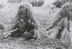 Betje en Mientje Bollen in 1935 op een zondagmiddag voor de korenschoven op de Katsberg