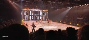 Daar werden we getrakteerd op een schitterend schouwspel van glinsterend ijs, wervelende schaats(t)ers, spectaculaire kostuums en sierlijke pirouettes. Er werd volop “oooh” en “aaah”